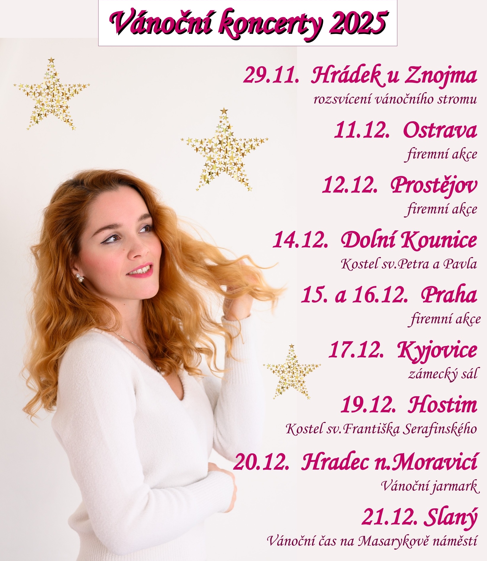 Přijměte srdečné pozvání na další vánoční koncert zpěvačky a textařky Lucie ZET, který proběhne v pátek 19.12.2025, od 17 hodin, v Kostele sv. Františka Serafínského, v malebné jihomoravské obci Hostim. Vstupné dobrovolné.