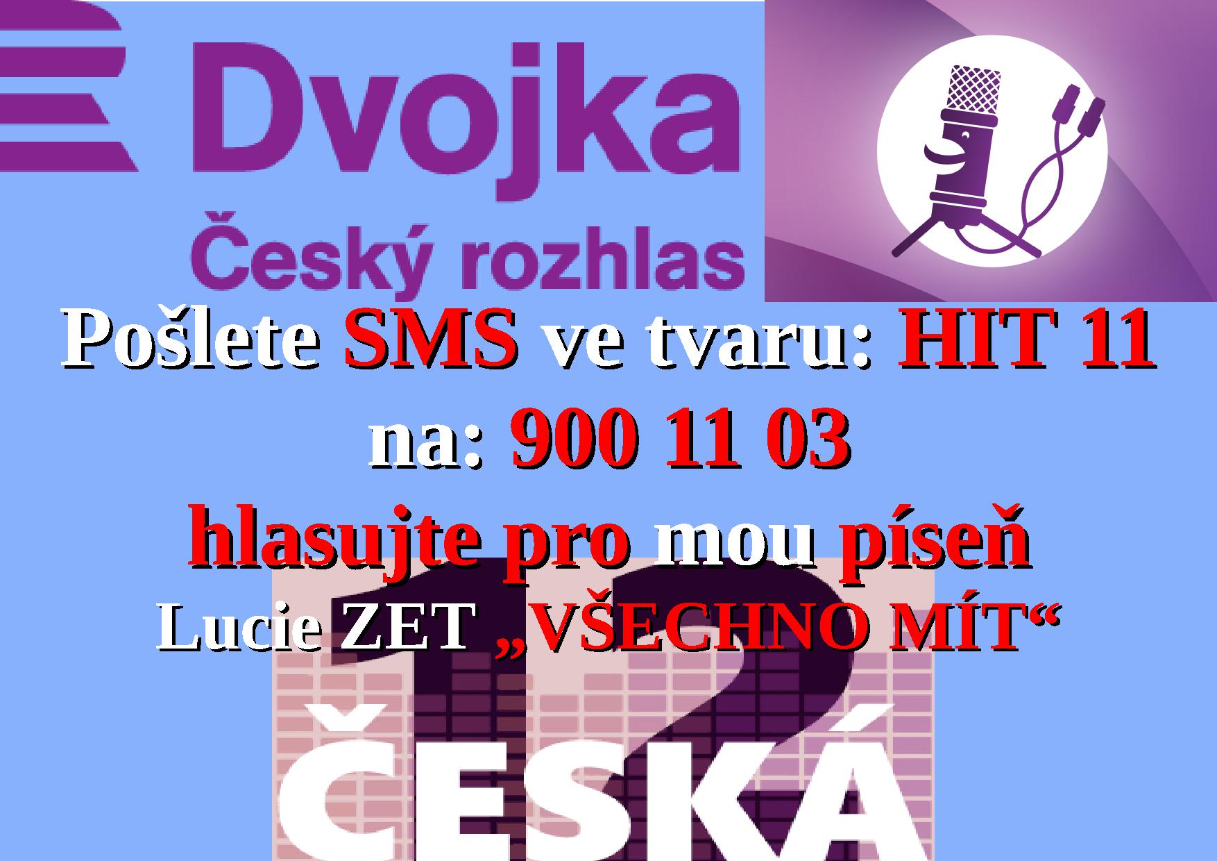 Pošlete SMS hlas ve tvaru HIT 11 na číslo 900 11 03 a podpořte tak mou písničku v hitparádě Česká dvanáctka vysílanou Českým rozhlasem Dvojka. Hlasování poběží do středeční půlnoci.